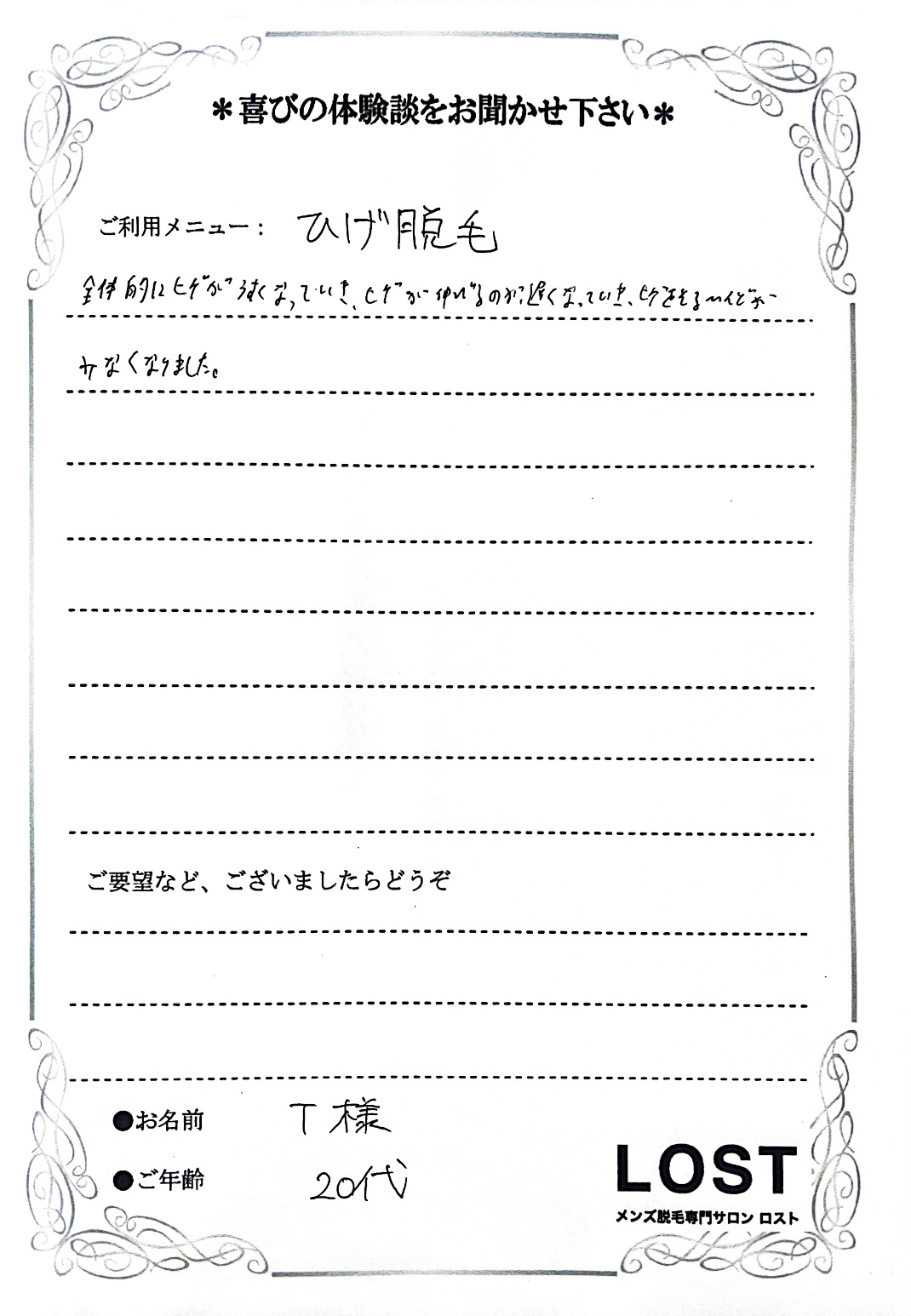 ひげ脱毛・ヘッドスパ・メンズエステをするなら、大阪・神戸・奈良の男性専門メディカルサロンロスト