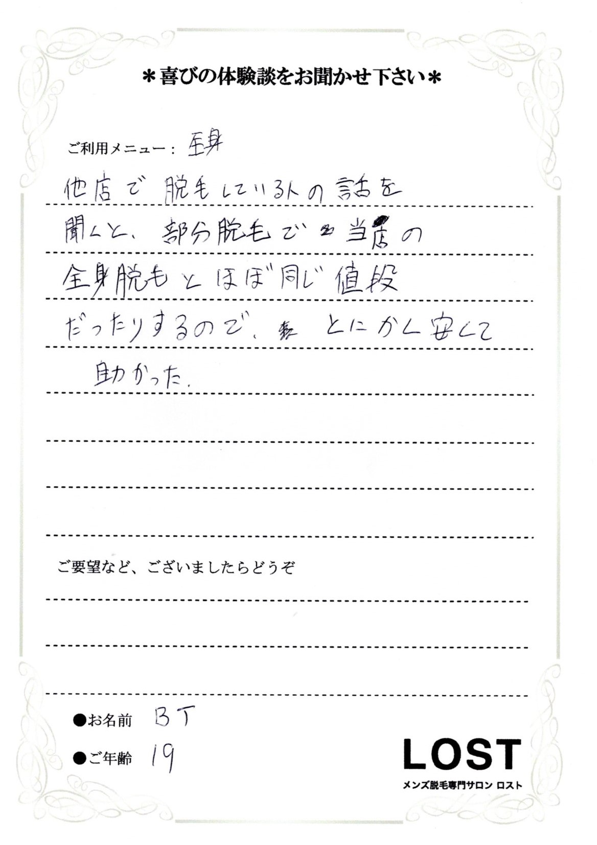 メンズ脱毛専門サロンLOST