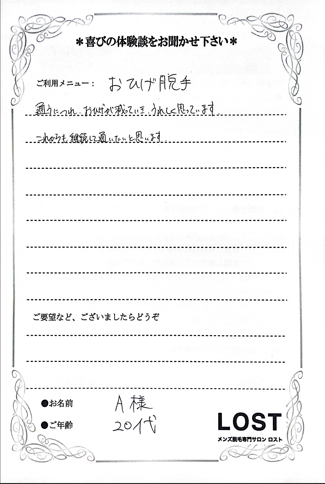 ひげ脱毛・ヘッドスパ・メンズエステをするなら、大阪・神戸・奈良の男性専門メディカルサロンロスト