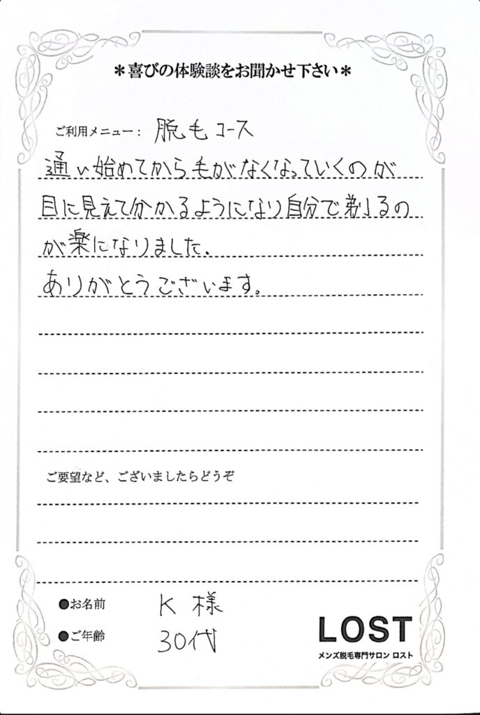 「通い始めてから毛が無くなっていくのが目に見えてわかるようになり自分で剃るのが