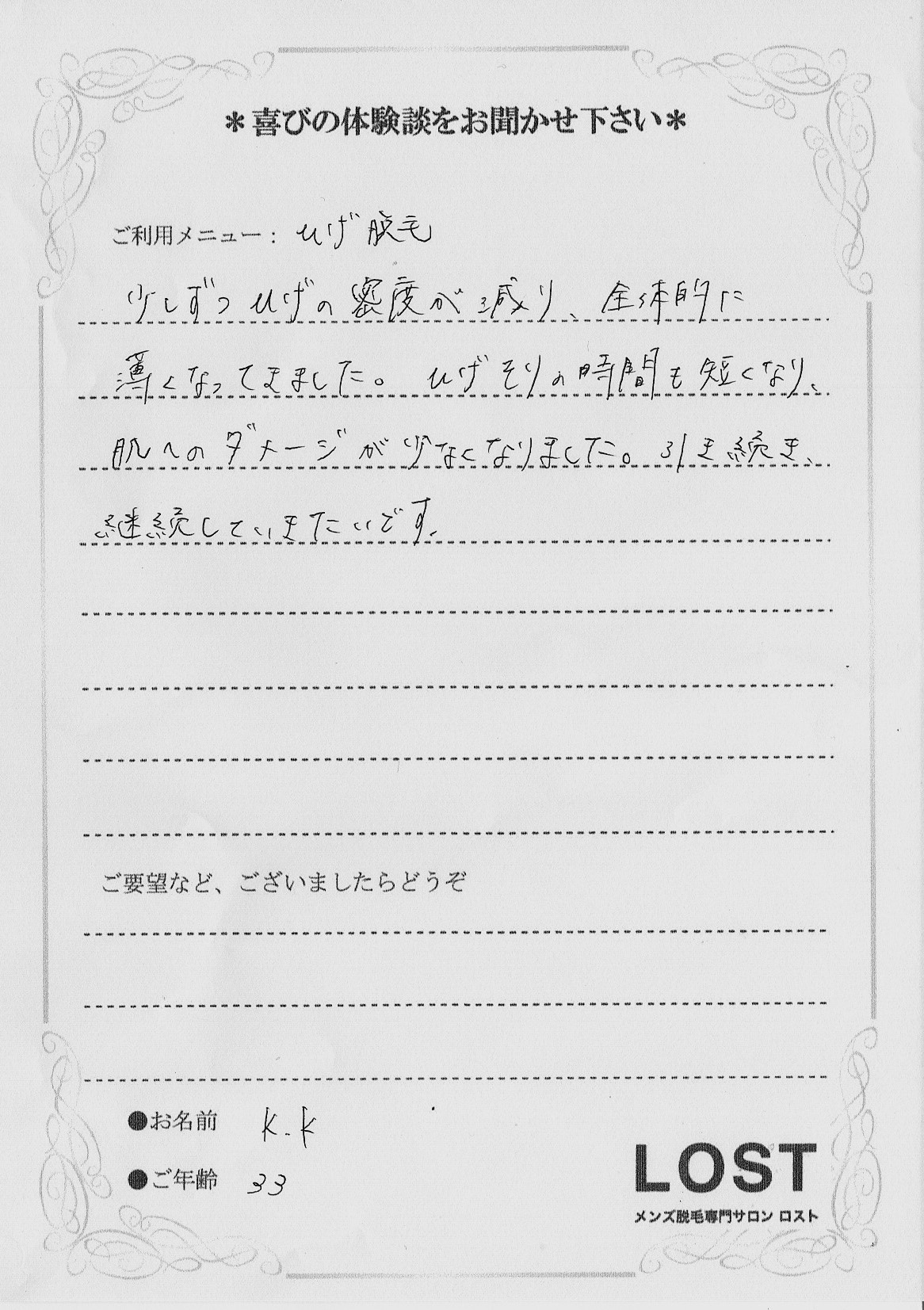ひげ脱毛・ヘッドスパ・メンズエステをするなら、大阪・神戸・奈良の男性専門メディカルサロンロスト
